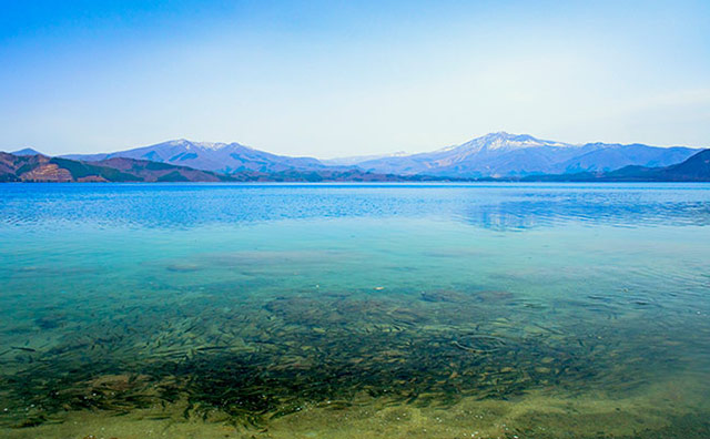 400mを超える深さのため、冬でも湖面が凍りつくことはありません。また、太陽の光が差し込むと水深によって鮮やかなグラデーションを描くことから、日本のバイカル湖とも呼ばれています。周辺は「田沢湖抱返り県立自然公園(たざわこ だきがえり けんりつしぜんこうえん)」に指定されていて、日本百景にも選ばれるほど美しい景観が魅力的です。