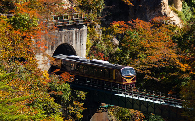 実は鳴子峡は自然だけでなく、鉄道を撮影する人たちにも人気のスポットなのです。鳴子峡にはトンネルがあり、ちょうどトンネルから電車が出てくるところを大深沢橋から撮影することができます。特に紅葉シーズンは電車が徐行運転してくれるので、うまく写真が撮れると話題です。普段鉄道写真にあまり興味がないという人でも、渓谷と電車のコラボレーションはとても絵になるので、ぜひ撮影に挑戦してみてください。